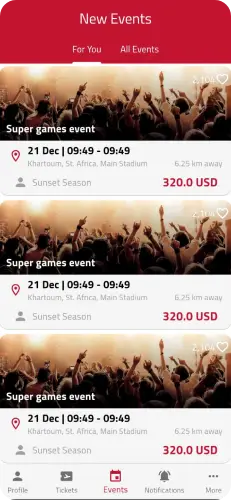تصفح مجموعة واسعة من الفعاليات مثل الحفلات الموسيقية، المسرحيات، الرياضة، وغيرها الكثير بكل سهولة.